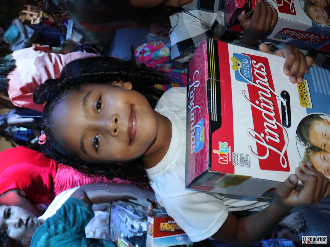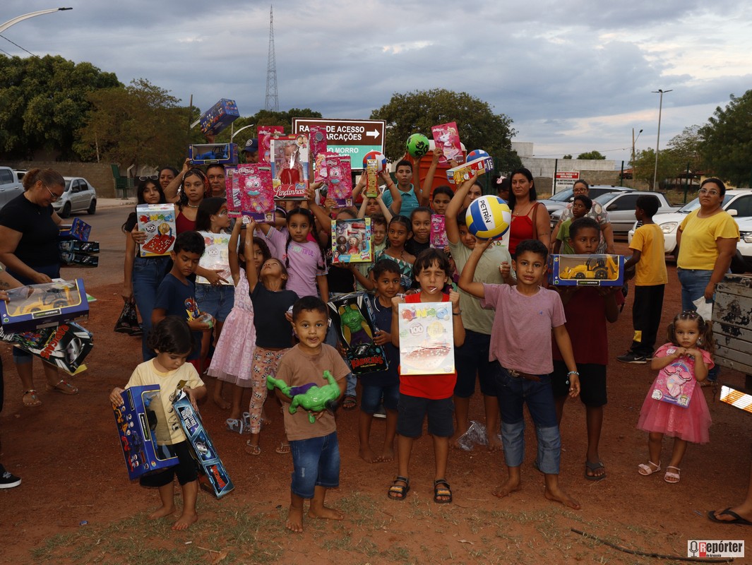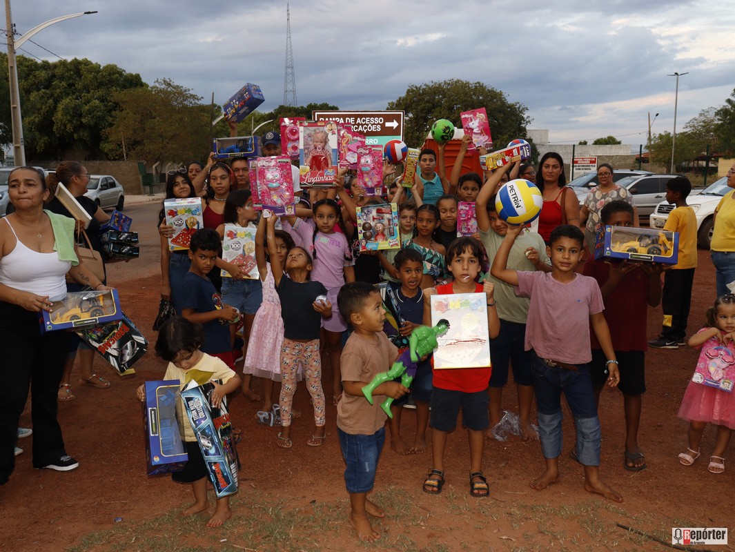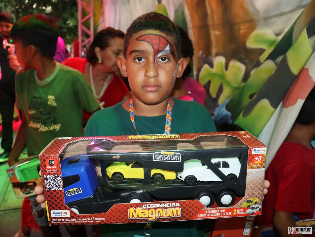 As crianças vibravam a cada sorteio, e a emoção tomava conta do público. Entre risadas, houve até quem contasse ter ouvido pedidos inusitados, como “Eu quero um iPhone!”, vindos dos pequenos em meio à euforia.