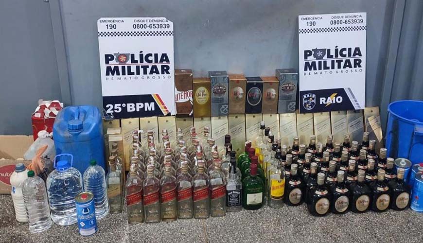 Com a afirmação do homem, os policiais entraram na residência e encontraram garrafas de solvente, etanol hidratado e álcool de milho. Além disso, foram localizadas mais de 80 garrafas de whisky adulterado pelos faccionados.